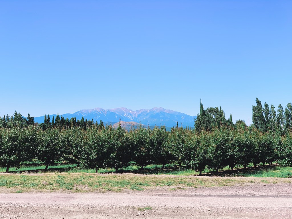 I chose to cycle from Perpignan to Ille-sur-Têt. However, cycling there is not the easiest option. After running out of cycle path, the only two options my boyfriend and I had were to cycle through small paths by farms or to ride on the départementales big roads. We chose the former and passed by beautiful peach and apricot orchards. We also got lost a few times and even got yelled by an angry lady and her ferocious dog for accidentally turning down her private road. Google Maps is not the most reliable when it comes to back roads, so if you are thinking of cycling here, it might be more practical to take the main roads. Unfortunately my bike’s front tire went flat from running over a big rock on a rugged path and I had to walk the bike the rest of the journey.