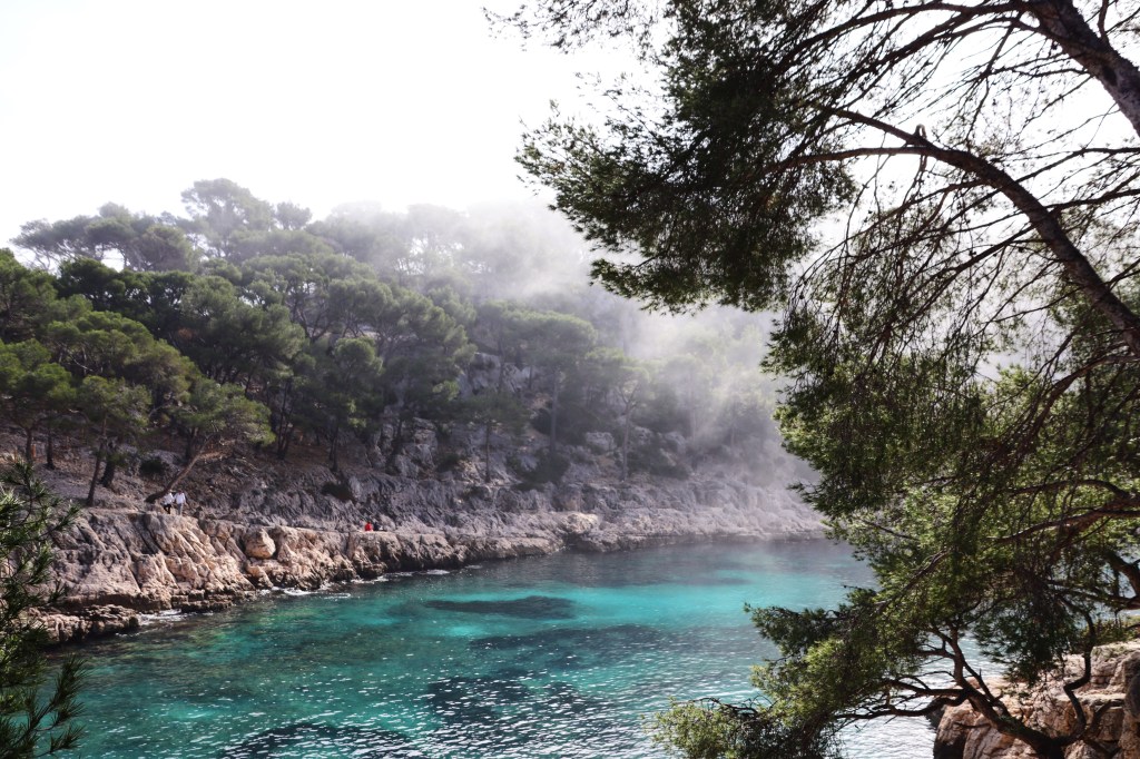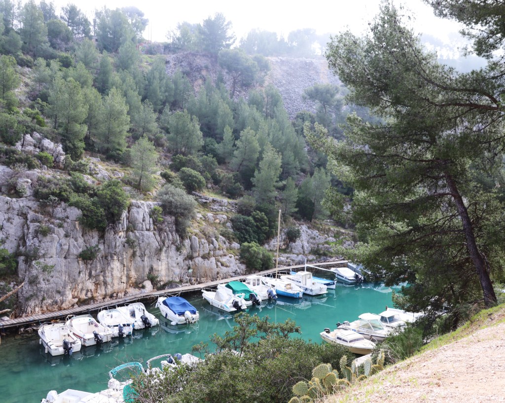 Calanque #1 was Port Miou, the easiest to get to and least secluded of the three. In this inlet you’ll see rows of little white sailboats. When we reached Port Miou, it was still quite foggy, but the rocky cliffs we starting to make an appearance. Even on a gray morning, the landscape was awe-inspiring.
