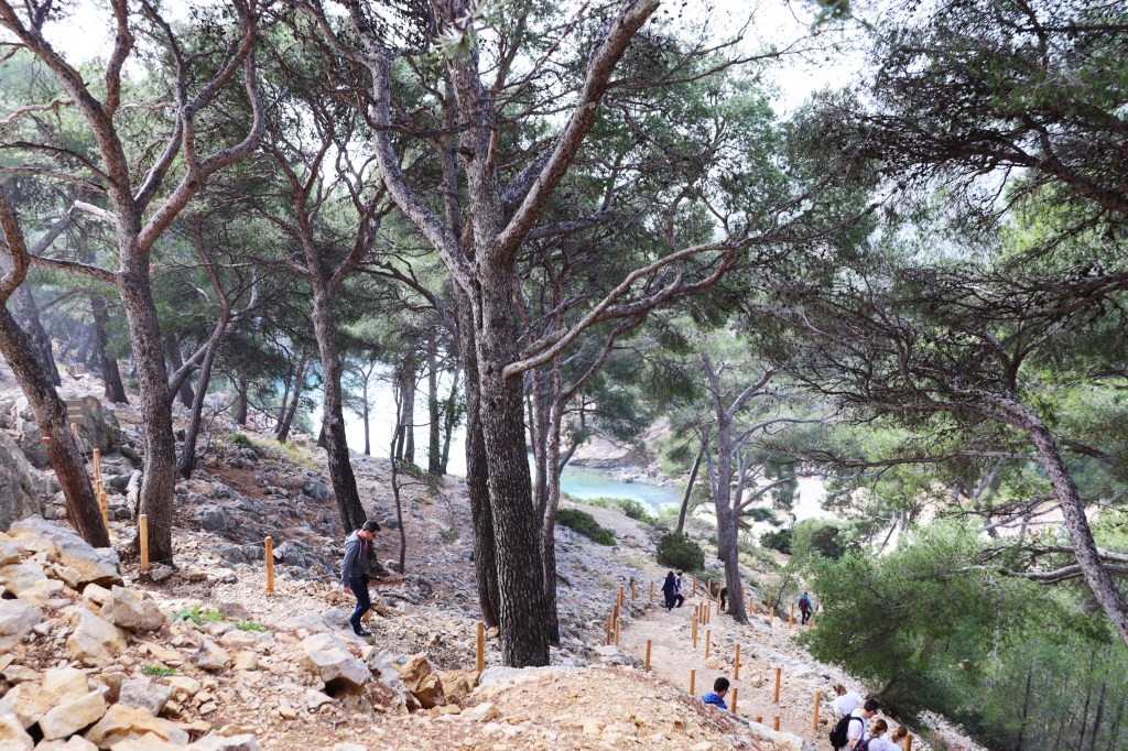 The next calanque was Port Pin, which was maybe a 15 minute walk from Port Miou. I would call this an easy to medium hike because it was short, but there are a few steep rocky parts to watch out for. I was surprised how many people were there in February! However, it was during the school holidays and winter in Provence can be warm and sunny. To find a more isolated spot, we climbed on the rocks until we found the perfect patch of rock ensoleillé.