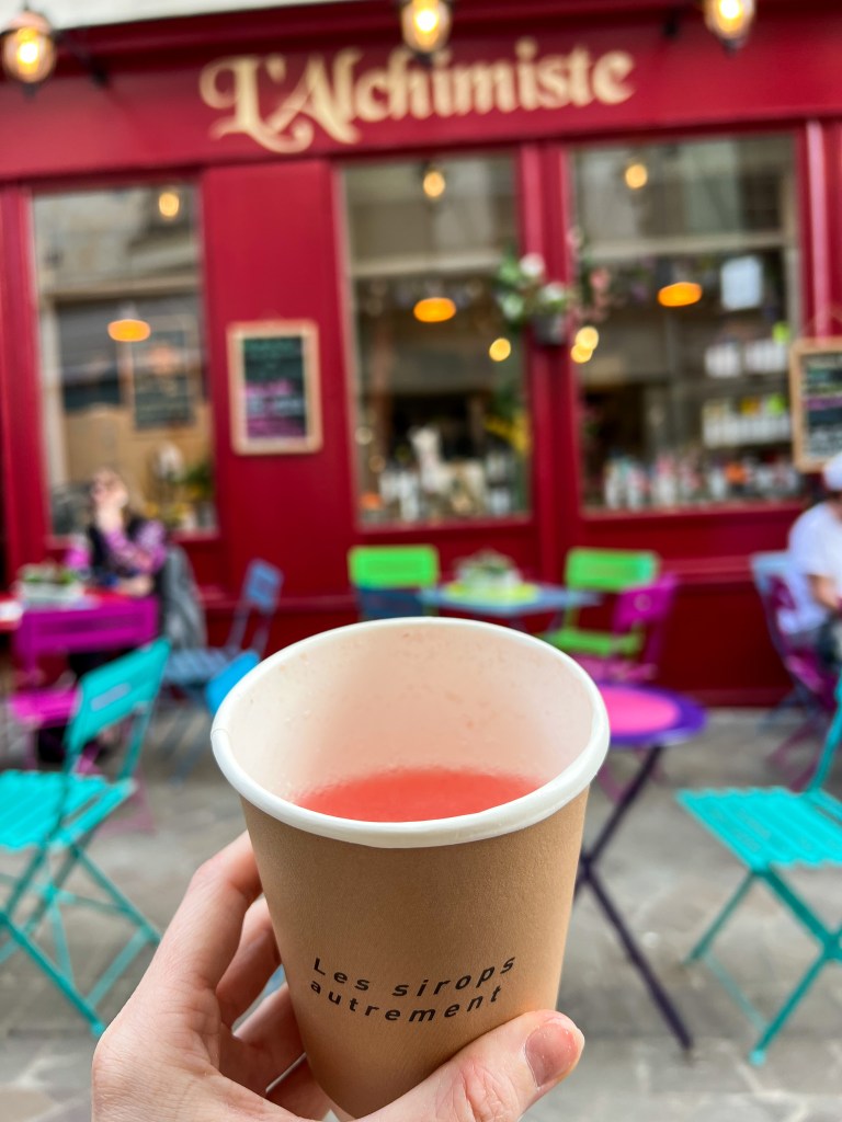 The café we had our eyes on was also a shop that sells artisanal syrups! This place was on my radar thanks to a tiktok video by a woman named Kinga who makes videos about spots to visit in Île-de-France. Her mini-guide to Chevreuse really inspired me to visit this quaint town. L’Alchimiste was quite the popular afternoon spot , but we managed to secure a table. For a refreshing post-castle visit drink, I had sparking water with a strawberry mint syrup and mon copain chose still water with geranium syrup. We split an assortment of dainty French cookies made with egg whites, almonds, caramel and more. As a souvenir, I picked out a lavender syrup for myself and bought a lemon mint one as a gift for my boyfriend’s parents.
