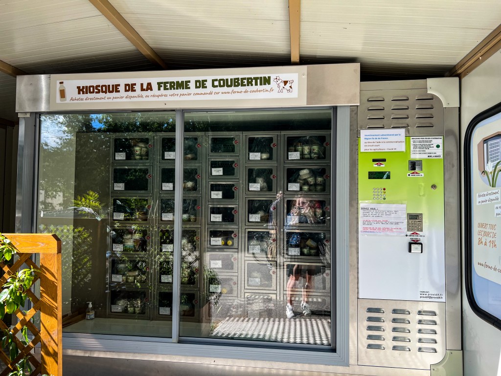 With a couple of hours left before we had to return our bikes, we headed back towards the farm, stopping once again by les petits ponts to check out what was on the left side of the path we didn’t wander down earlier. It ended up being more of the same, but it was still pleasant to pass by. Once at the dairy farm, the smell of cattle was quite strong. There was a long line to go inside the farm shop, but I also noticed a cheese vending machine! With this self-serve machine, you can pick up an order you placed earlier in the week or purchase a bundle that hadn’t been claimed. Since we had about an hour’s train ride back to Paris, we figured buying some fresh cheese probably wasn’t the best idea.