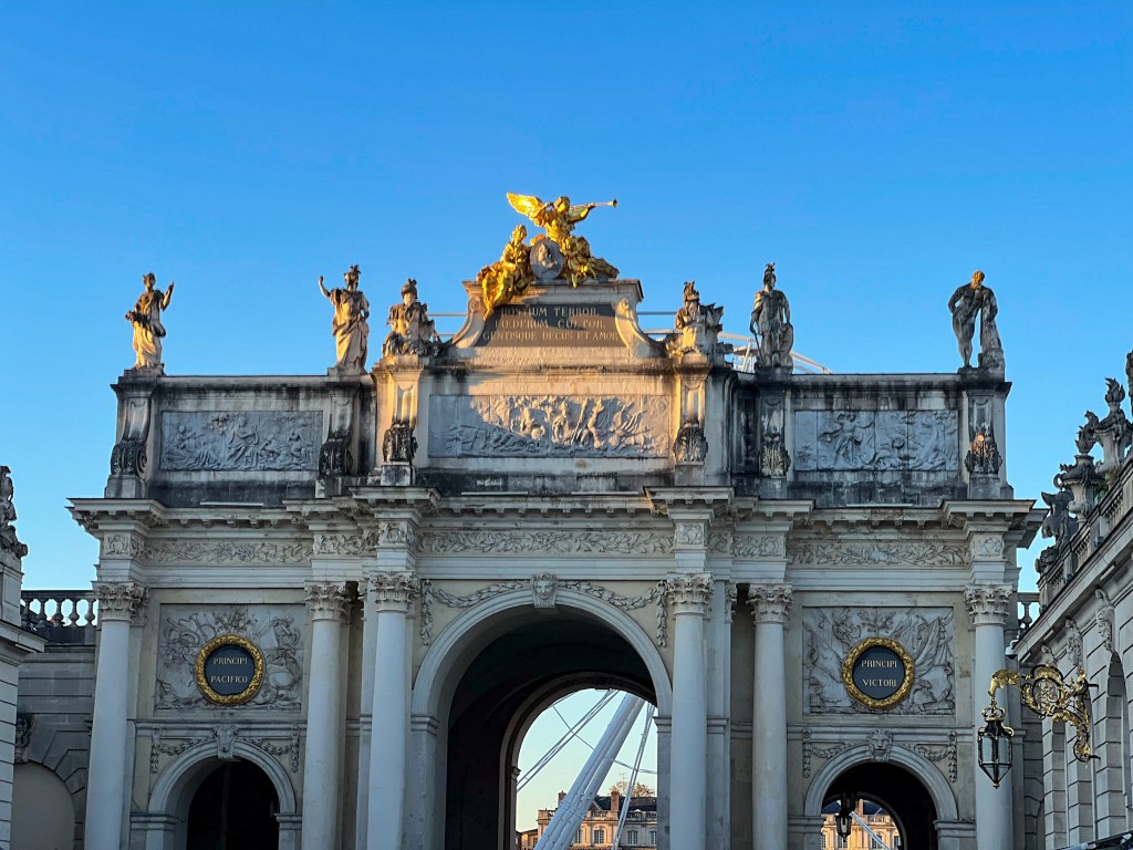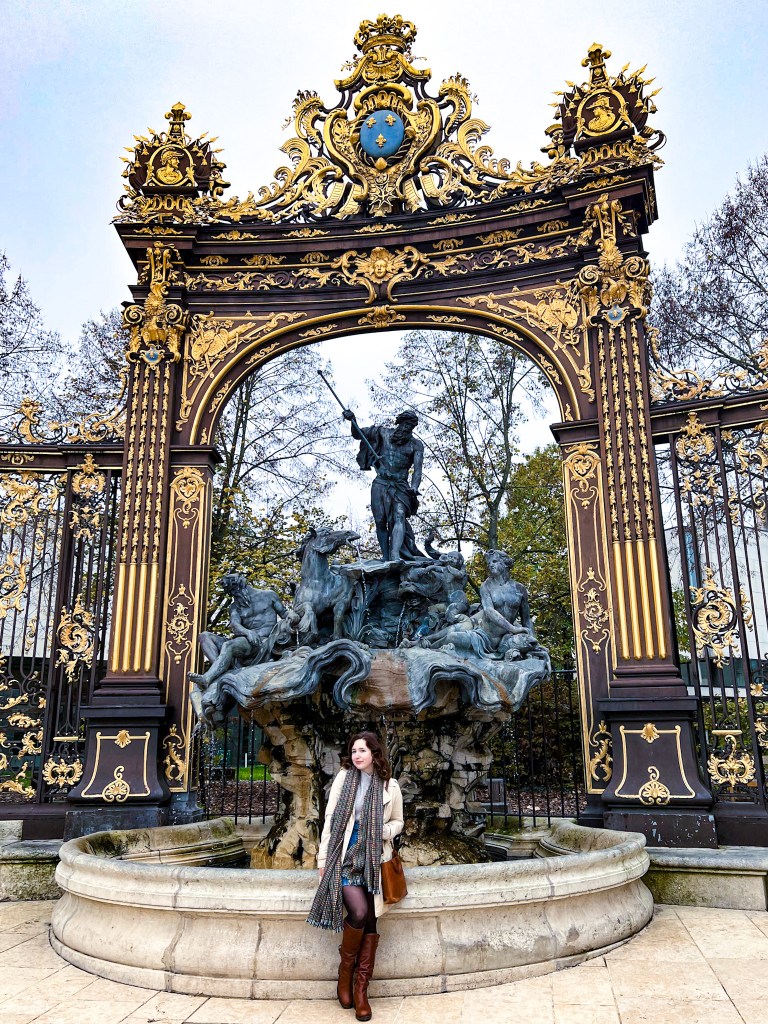Did you know that Place Stanislas in Nancy is considered to be one of France’s most beautiful squares, if not the most beautiful? This ornate square is named after 18th-century Duke of Lorraine and King of Poland, Stanislas I. Adorning the square are the City Hall, the Opera house, the Jacquet Pavillon, the Fine Arts Museum, the Héré Arch. Two Rococo fountains inspired by Greek and Roman Mythology grace the square’s northern corners. What made me fall in love with Place Stan however, are the gilded wrought-iron gates and the light ochre stone that add some brightness to the grey skies often present in the winter in Eastern France.