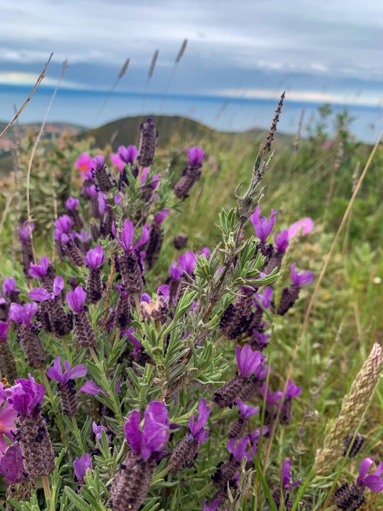 For the descent, we chose a winding path that led us through vineyards back to the Collioure beach. We hiked in late May so the trail was blooming with Spanish Lavender, Forsythia, and pink Cistus. I’m glad we brought our raincoats with us because even though the morning was quite sunny, storm clouds soon rolled in. Luckily we didn’t get rained on!